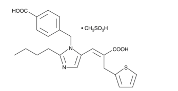 Smiles CCCCC1=NC=C(N1CC2=CC=C(C=C2)C(=O)O)/C=C(\CC3=CC=CS3)/C(=O)O.CS(=O)(=O)O