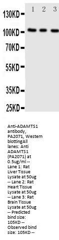 Boster Bio Anti-ADAMTS1 Antibody catalog # PA2071. Tested in WB applications. This antibody reacts with Mouse, Rat. The brand Picoband indicates this is a premium antibody that guarantees superior quality, high affinity, and strong signals with minimal background in Western blot applications. Only our best-performing antibodies are designated as Picoband, ensuring unmatched performance.