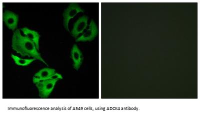 Rabbit polyclonal antibody against ADCK4 protein. Immunogen region is N-terminal.