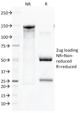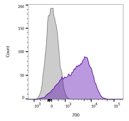 CD45R, also designated CD45 and PTPRC, has been identified as a transmembrane glycoprotein, broadly expressed among hematopoietic cells. Multiple isoforms of CD45R are distributed throughout the immune system according to cell type. These isoforms arise because of alternative splicing of exons 4, 5, and 6. The corresponding protein domains are characterized by the binding of monoclonal antibodies specific for CD45RA (exon 4), CD45RB (exon 5), CD45RC (exon 6) and CD45RO (exons 4 to 6 spliced out). The variation in these isoforms is localized to the extracellular domain of CD45R, while the intracellular domain is conserved. CD45R functions as a phosphor-tyrosine phosphatase. This MAb reacts with all isoforms of CD45R expressed by all hematopoietic cells, except erythrocytes, having a higher level of expression on lymphocytes than on granulocytes (Workshop IV). Antibody to CD45 is useful in differential diagnosis of lymphoid tumors from non-hematopoietic undifferentiated neoplasms.Primary antibodies are available purified, or with a selection of fluorescent CF® Dyes and other labels. CF® Dyes offer exceptional brightness and photostability. Note: Conjugates of blue fluorescent dyes like CF®405S and CF®405M are not recommended for detecting low abundance targets, because blue dyes have lower fluorescence and can give higher non-specific background than other dye colors.