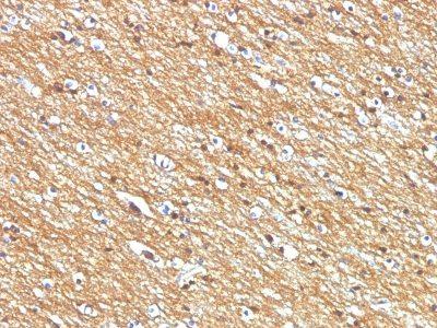 This MAb reacts with an extracellular domain (close to transmembrane) of CD56/NCAM. Three isoforms of neural cell adhesion molecule (NCAM) are produced by differential splicing of the RNA transcript from a single gene. The 135 kDa isoform is the basic molecule, which is glycosylated or sialylated to produce the mature species. Anti-CD56 recognizes two proteins of the neural cell adhesion molecule, the basic molecule expressed on most neuroectodermally derived tissues and neoplasms (e.g. retinoblastoma, medulloblastomas, astrocytomas, neuroblastomas, and small cell carcinomas). It is also expressed on some mesodermally derived tumors (rhabdomyosarcoma). Anti-CD56 plays an important role in the diagnosis of nodal and nasal NK/T-cell lymphomas.Primary antibodies are available purified, or with a selection of fluorescent CF® Dyes and other labels. CF® Dyes offer exceptional brightness and photostability. Note: Conjugates of blue fluorescent dyes like CF®405S and CF®405M are not recommended for detecting low abundance targets, because blue dyes have lower fluorescence and can give higher non-specific background than other dye colors.