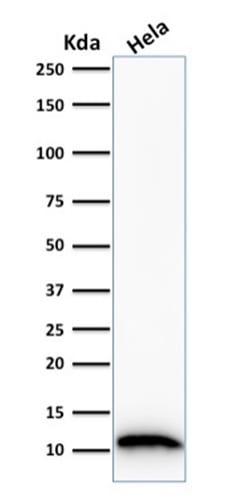 Higher concentration may be required for direct detection using primary antibody conjugates than for indirect detection with secondary antibody|Immunofluorescence: 1-2 ug/mL|Immunohistology (formalin): 0.25-0.5 ug/mL|Staining of formalin-fixed tissues requires boiling tissue sections in 10 mM citrate buffer, pH 6.0, for 10-20 min followed by cooling at RT for 20 min|Flow Cytometry 0.5-1 ug/million cells/0.1 mL|Western blotting 0.5-1 ug/mL|Optimal dilution for a specific application should be determined by user