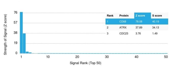 Recombinant fragment of human CD68 protein (around aa 150-221) (exact sequence is proprietary)