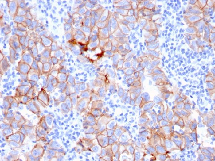 Recognizes a protein of 185 kDa, which is identified as c-erbB-2/HER-2/neu. Its epitope is localized in the extracellular domain. C-erbB-2/HER-2 is a member of the EGFR family. This MAb is specific and shows minimal cross-reaction with other members of the EGFR-family. Receptors of this family are located on the plasma membrane and consist of an extracellular ligand-binding domain that is connected to a large intracellular domain by a single transmembrane sequence. c-erbB-2/HER-2 protein is over-expressed in a variety of carcinomas especially those of breast and ovary. Primary antibodies are available purified, or with a selection of fluorescent CF® Dyes and other labels. CF® Dyes offer exceptional brightness and photostability. Note: Conjugates of blue fluorescent dyes like CF®405S and CF®405M are not recommended for detecting low abundance targets, because blue dyes have lower fluorescence and can give higher non-specific background than other dye colors.