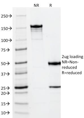 Higher concentration may be required for direct detection using primary antibody conjugates than for indirect detection with secondary antibody|Immunofluorescence: 1-2 ug/mL|Does not react with mouse or rat|Flow cytometry: 0.5-1 ug/million cells|Immunohistology (formalin): 0.25-0.5 ug/mL for 30 minutes at RT|Staining of formalin-fixed tissues requires boiling tissue sections in 10 mM citrate buffer, pH 6.0, for 10-20 minutes followed by cooling at RT for 20 minutes|Western blotting 0.25-0.5 ug/mL|Optimal dilution for a specific application should be determined by user