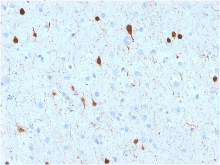 Calretinin (also known as Calbindin 2) is a member of the troponin C superfamily. Proteins in this family have 6 EF-hand domains which bind to calcium. Calretinin is a vitamin D-dependent calcium-binding protein involved in calcium signaling. It is present in subsets of neurons throughout the brain and spinal chord, including sensory ganglia. Antibodies to calretinin are useful in differentiating mesothelioma from adenocarcinomas of the lung. They can also aid in differentiating adrenal cortical neoplasms from pheochromocytomas Primary antibodies are available purified, or with a selection of fluorescent CF® Dyes and other labels. CF® Dyes offer exceptional brightness and photostability. Note: Conjugates of blue fluorescent dyes like CF®405S and CF®405M are not recommended for detecting low abundance targets, because blue dyes have lower fluorescence and can give higher non-specific background than other dye colors.