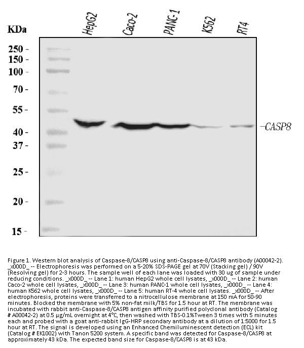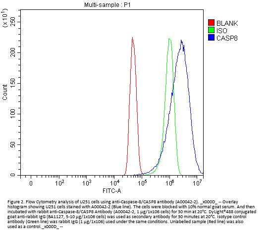 Boster Bio Anti-Caspase-8/CASP8 Antibody Picoband® catalog # A00042-2. Tested in Flow Cytometry, WB applications. This antibody reacts with Human. The brand Picoband indicates this is a premium antibody that guarantees superior quality, high affinity, and strong signals with minimal background in Western blot applications. Only our best-performing antibodies are designated as Picoband, ensuring unmatched performance.