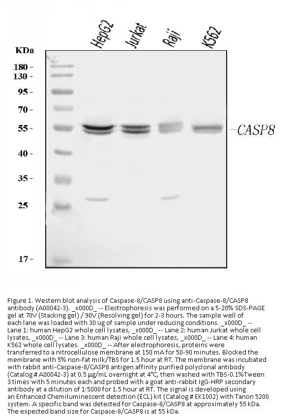 Boster Bio Anti-Caspase-8/CASP8 Antibody Picoband® catalog # A00042-3. Tested in ELISA, Flow Cytometry, WB applications. This antibody reacts with Human. The brand Picoband indicates this is a premium antibody that guarantees superior quality, high affinity, and strong signals with minimal background in Western blot applications. Only our best-performing antibodies are designated as Picoband, ensuring unmatched performance.
