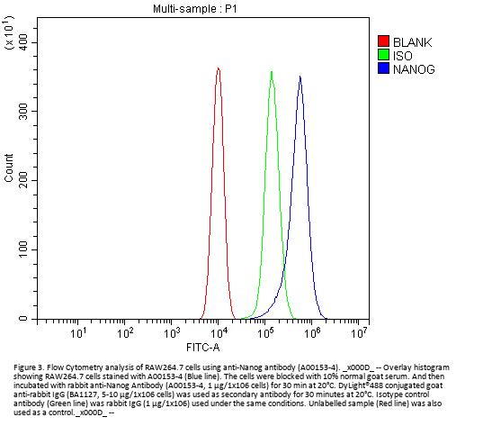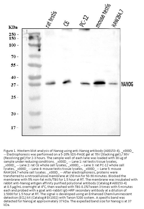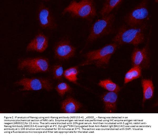 Boster Bio Anti-Nanog Antibody Picoband® catalog # A00153-4. Tested in ELISA, Flow Cytometry, IF, ICC, WB applications. This antibody reacts with Mouse, Rat. The brand Picoband indicates this is a premium antibody that guarantees superior quality, high affinity, and strong signals with minimal background in Western blot applications. Only our best-performing antibodies are designated as Picoband, ensuring unmatched performance.