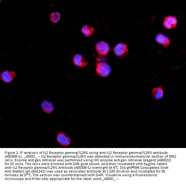 Boster Bio Anti-IL2 Receptor gamma/IL2RG Antibody Picoband® catalog # A00308-1. Tested in IF, ICC, WB applications. This antibody reacts with Human, Mouse, Rat. The brand Picoband indicates this is a premium antibody that guarantees superior quality, high affinity, and strong signals with minimal background in Western blot applications. Only our best-performing antibodies are designated as Picoband, ensuring unmatched performance.