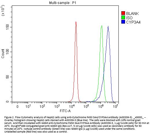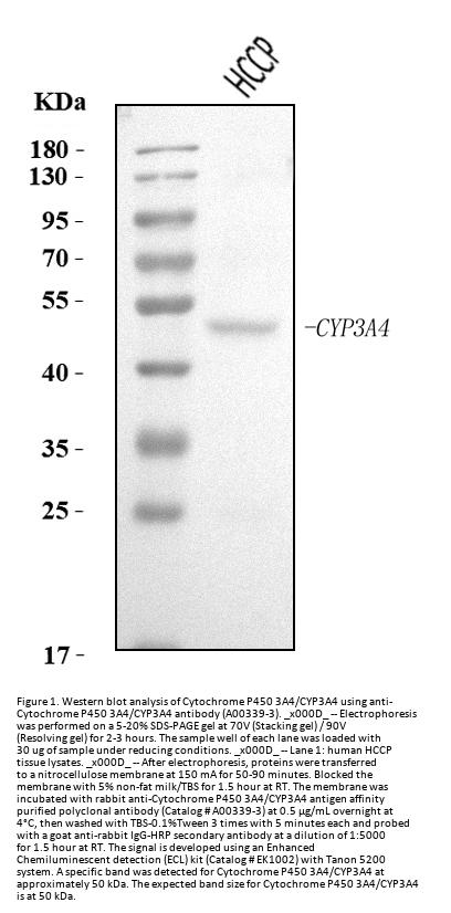 Boster Bio Anti-Cytochrome P450 3A4/CYP3A4 Antibody Picoband® catalog # A00339-3. Tested in Flow Cytometry, WB applications. This antibody reacts with Human. The brand Picoband indicates this is a premium antibody that guarantees superior quality, high affinity, and strong signals with minimal background in Western blot applications. Only our best-performing antibodies are designated as Picoband, ensuring unmatched performance.