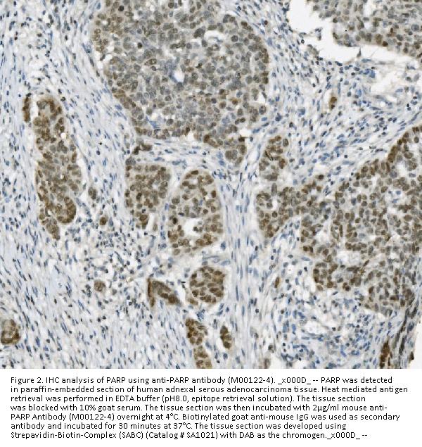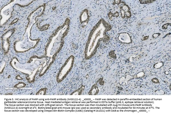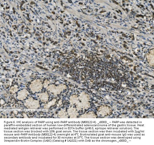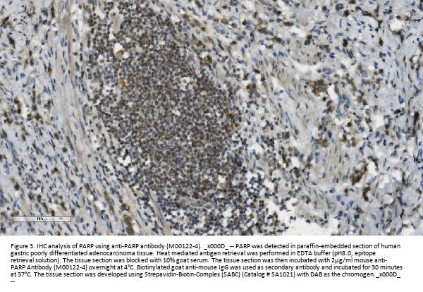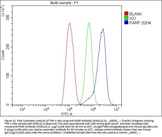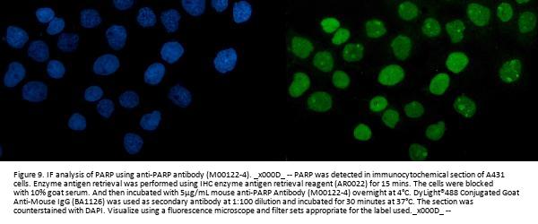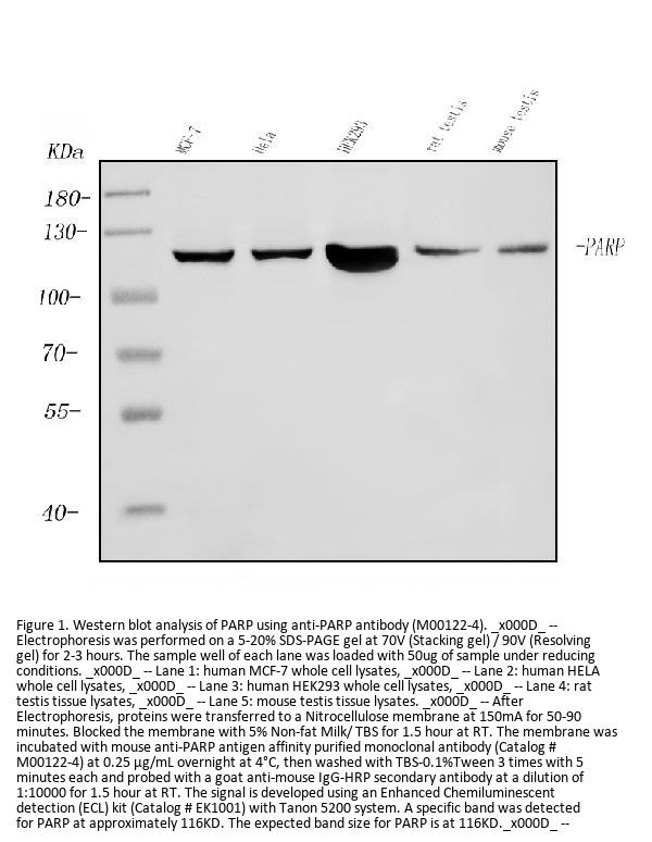 Boster Bio Anti-PARP/PARP1 Picoband® Antibody (monoclonal, 2I2H4) catalog # M00122-4. Tested in Flow Cytometry, IF, IHC, ICC, WB applications. This antibody reacts with Human, Mouse, Rat. The brand Picoband indicates this is a premium antibody that guarantees superior quality, high affinity, and strong signals with minimal background in Western blot applications. Only our best-performing antibodies are designated as Picoband, ensuring unmatched performance.