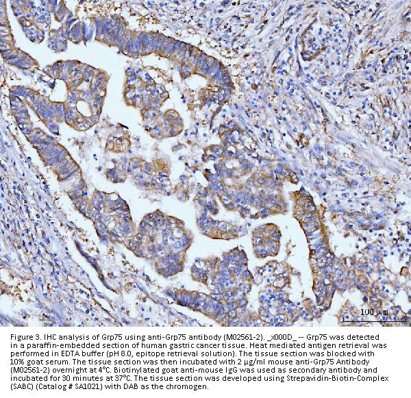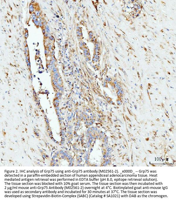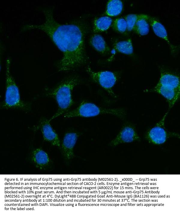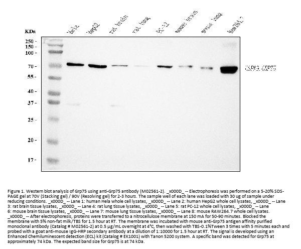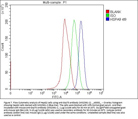 Boster Bio Anti-Grp75 Antibody Picoband® (monoclonal, 4I9) catalog # M02561-2. Tested in Flow Cytometry, IF, IHC, ICC, WB applications. This antibody reacts with Human, Mouse, Rat. The brand Picoband indicates this is a premium antibody that guarantees superior quality, high affinity, and strong signals with minimal background in Western blot applications. Only our best-performing antibodies are designated as Picoband, ensuring unmatched performance.