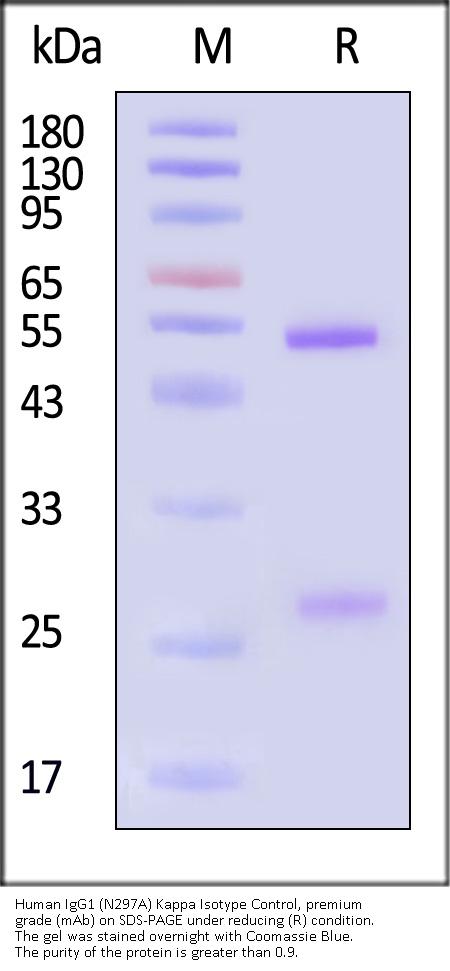 Human IgG1 (N297A) Kappa Isotype Control, premium grade (mAb) is a chimeric monoclonal antibody recombinantly expressed from human 293 cells (HEK293), which combines the variable region of a mouse monoclonal antibody with human IgG1 constant domain.
