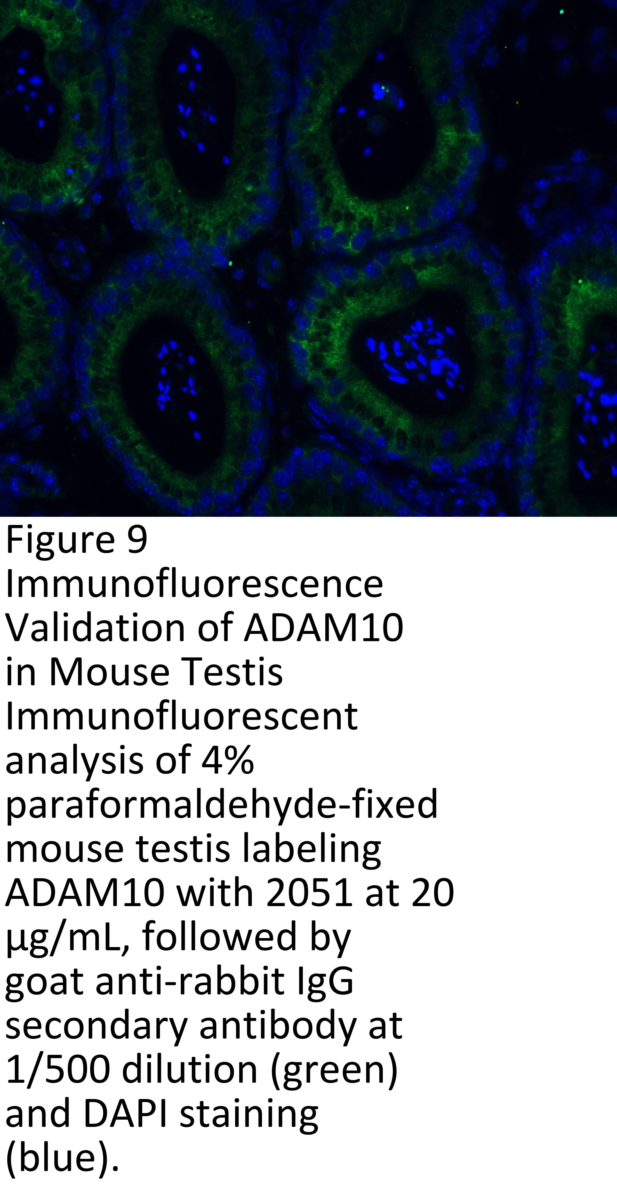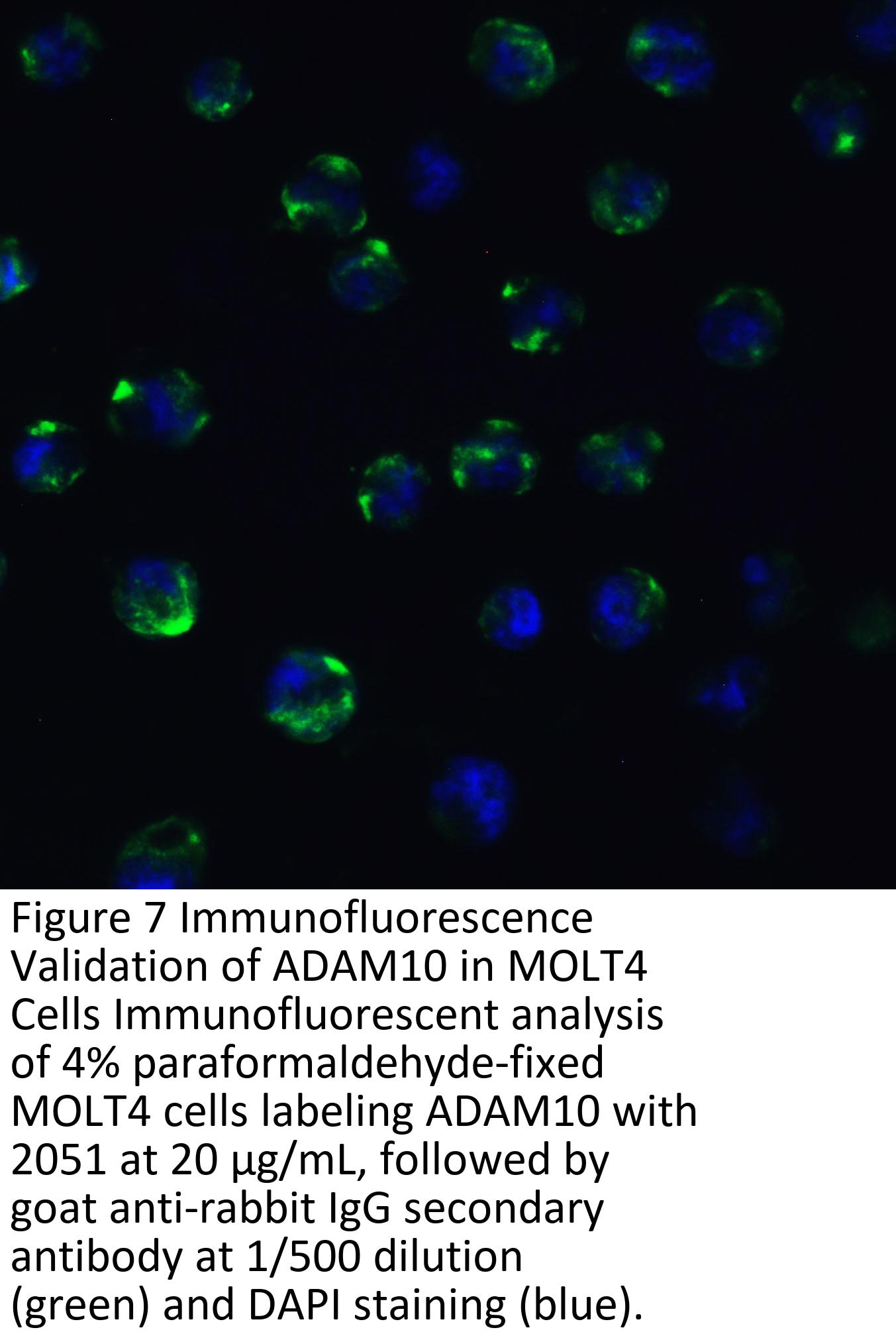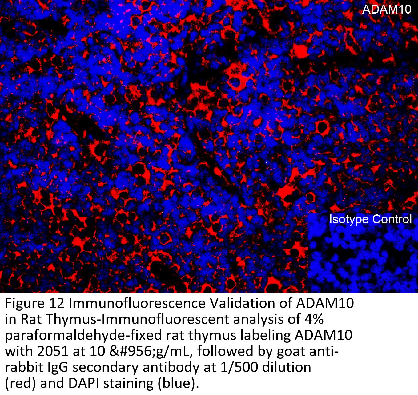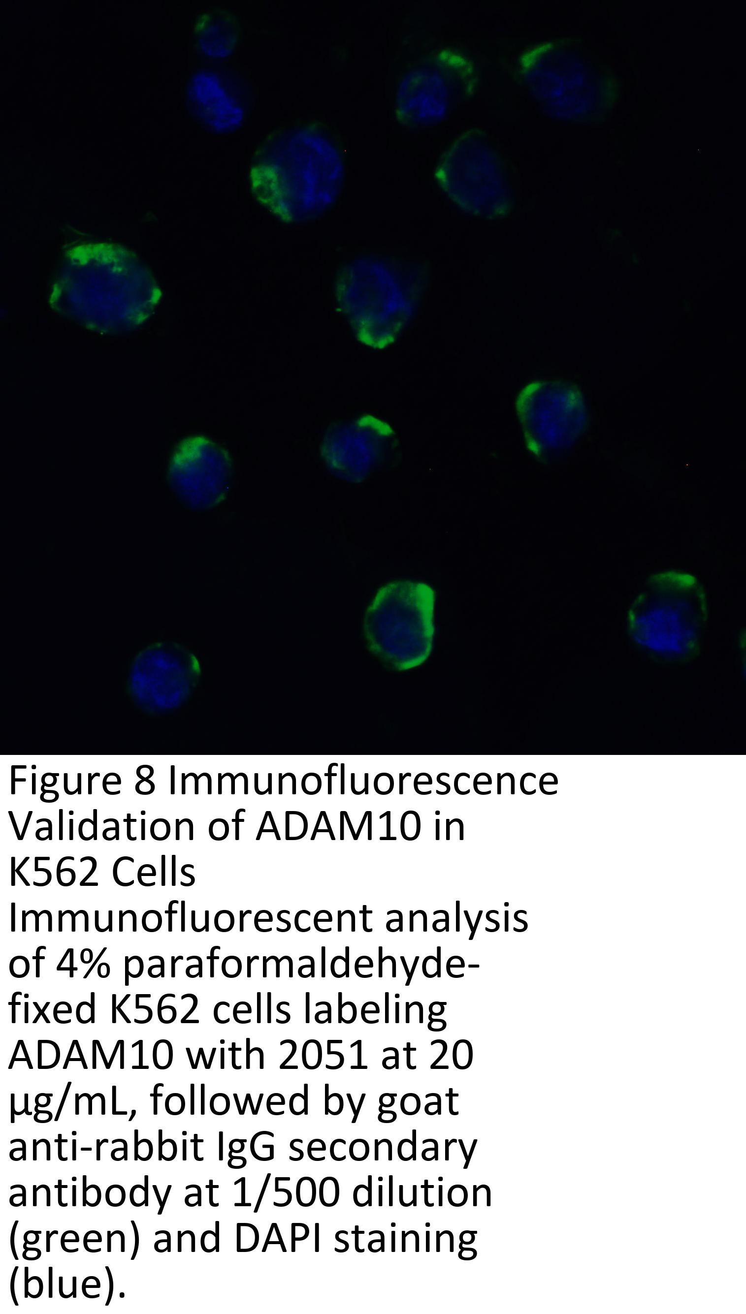 KO validation (Figure 1 and 2): Anti-ADAM10 antibody (2051) specificity was further verified by ADAM10 specific knockout. ADAM10 signal in was detected by 2051 in wild type of MEF cells and 293 cells, but not in ADAM10 knockout cells.