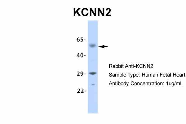 KCNN2 antibody can be used for detection of KCNN2 by ELISA at 1:62500. KCNN2 antibody can be used for detection of KCNN2 by western blot at 1 μ g/mL, and HRP conjugated secondary antibody should be diluted 1:50, 000 - 100, 000.