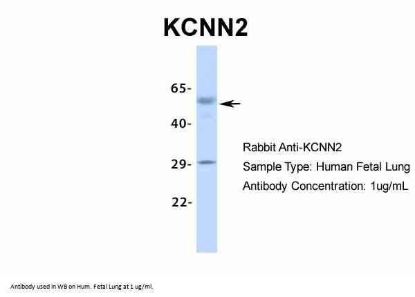 Antibody produced in rabbits immunized with a synthetic peptide corresponding a region of human KCNN2.