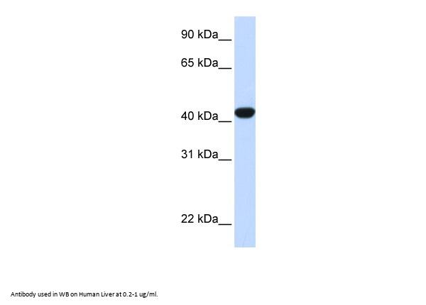Antibody produced in rabbits immunized with a synthetic peptide corresponding a region of human FAH.