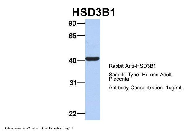 HSD3B1 antibody can be used for detection of HSD3B1 by ELISA at 1:62500. HSD3B1 antibody can be used for detection of HSD3B1 by western blot at 1 μ g/mL, and HRP conjugated secondary antibody should be diluted 1:50, 000 - 100, 000.