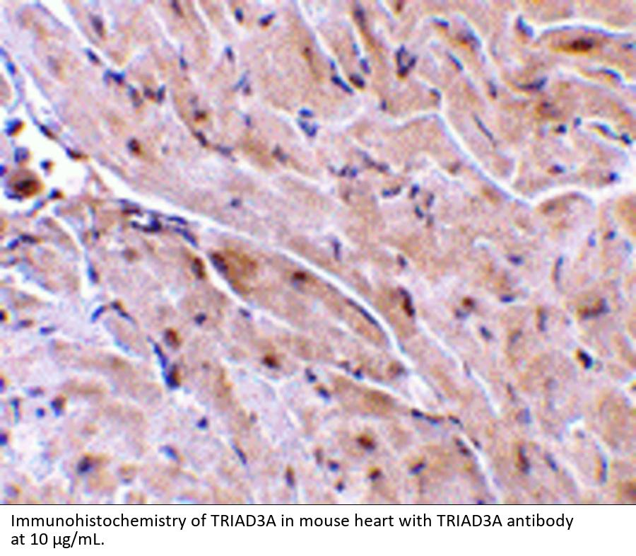 TRIAD3A antibody was raised against a peptide corresponding to 15 amino acids near the amino-terminus of mouse TRIAD3A.