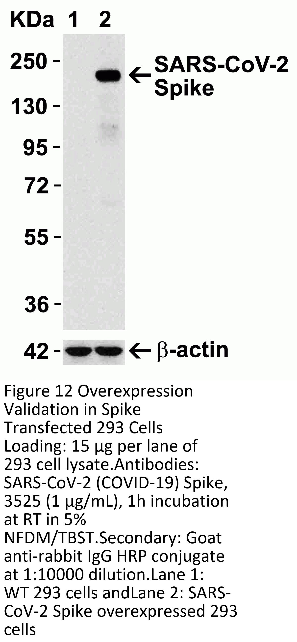 Anti-SARS-CoV-2 (COVID-19) Spike antibody (3525) was raised against a peptide corresponding to 20 amino acids near the carboxy terminus of SARS-CoV-2 (COVID-19) Spike glycoprotein.