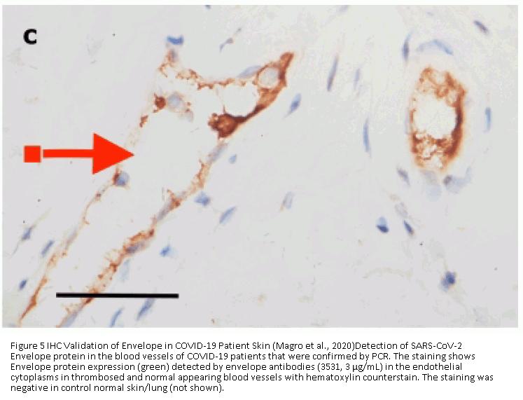 Magro, et al. Docked severe acute respiratory syndrome coronavirus 2 proteins within the cutaneous and subcutaneous microvasculature and their role in the pathogenesis of severe coronavirus disease 2019. Hum Pathol. 2020 Dec;106:106-116. doi: 10.1016/j.humpath.2020.10.002. Epub 2020 Oct 12.PMID: 33058948