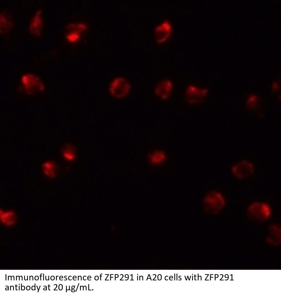 ZFP281 antibody can be used for detection of ZFP281 by Western blot at 0.5 μ g/mL. Antibody can also be used for immunofluorescence starting at 20 μ g/mL. For immunofluorescence start at 20 μ g/mL.