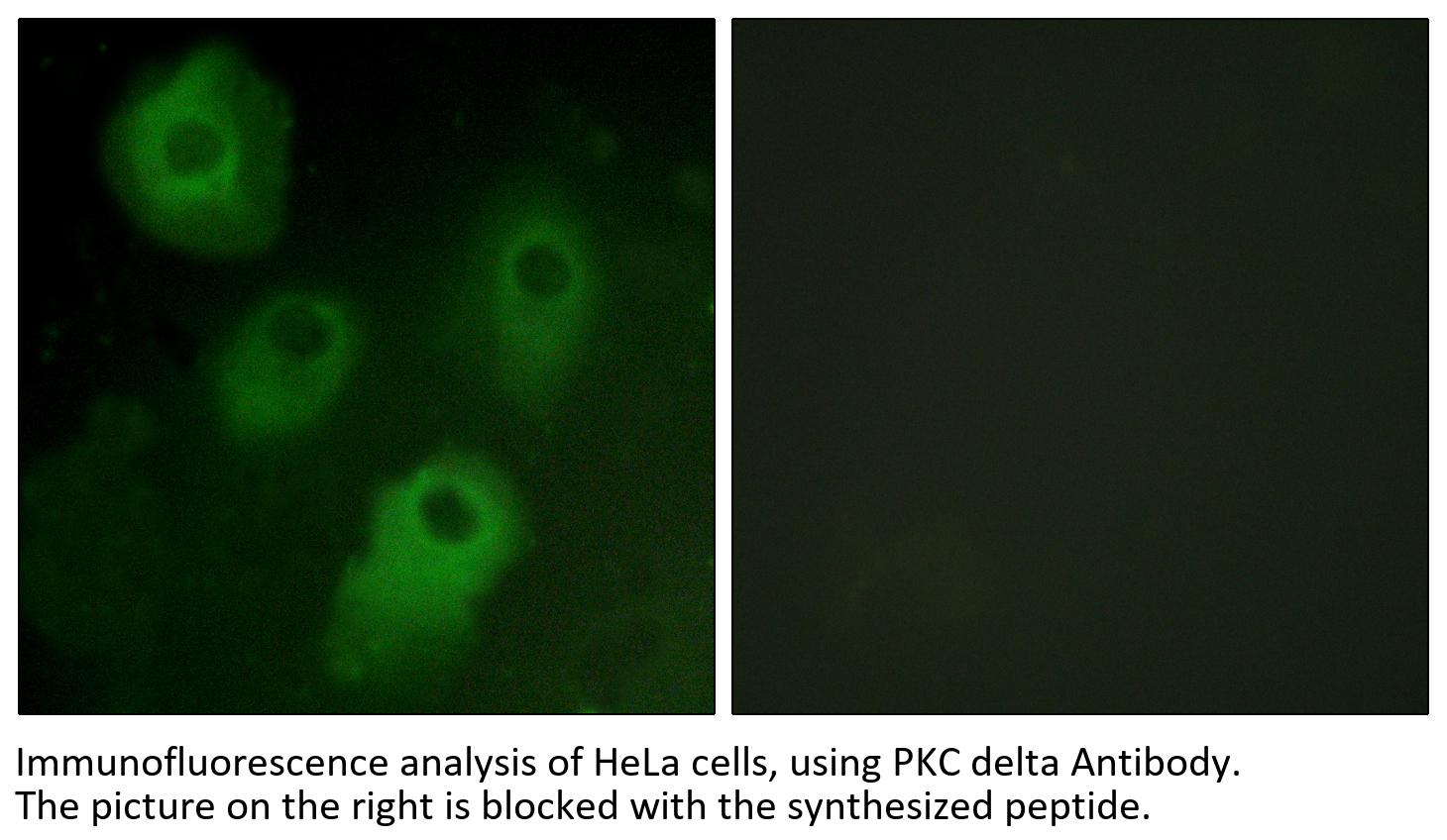 The antiserum was produced against synthesized peptide derived from human PKC delta.