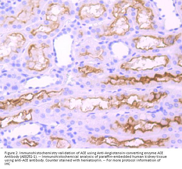Boster Bio Anti-Angiotensin-converting enzyme ACE Antibody catalog # A00251-1. Tested in WB, IHC, Flow Cytometry applications. This antibody reacts with Human, Mouse.