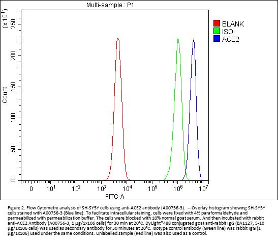 Boster Bio Anti-ACE2 Antibody Picoband® catalog # A00756-3. Tested in WB, Flow Cytometry, ELISA applications. This antibody reacts with Human. The brand Picoband indicates this is a premium antibody that guarantees superior quality, high affinity, and strong signals with minimal background in Western blot applications. Only our best-performing antibodies are designated as Picoband, ensuring unmatched performance.