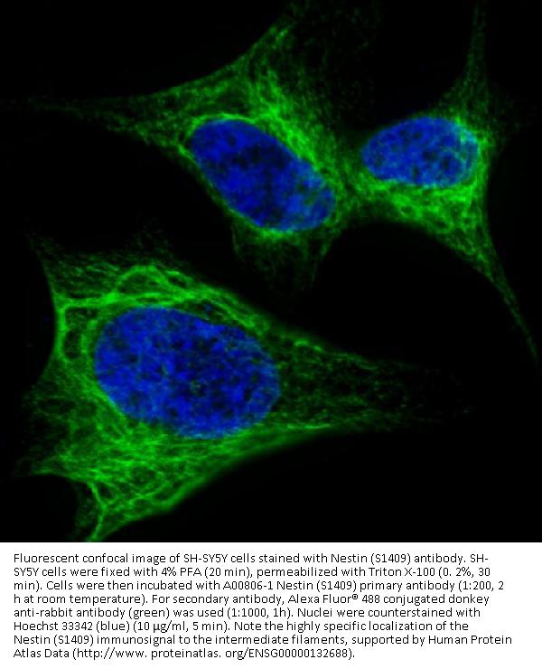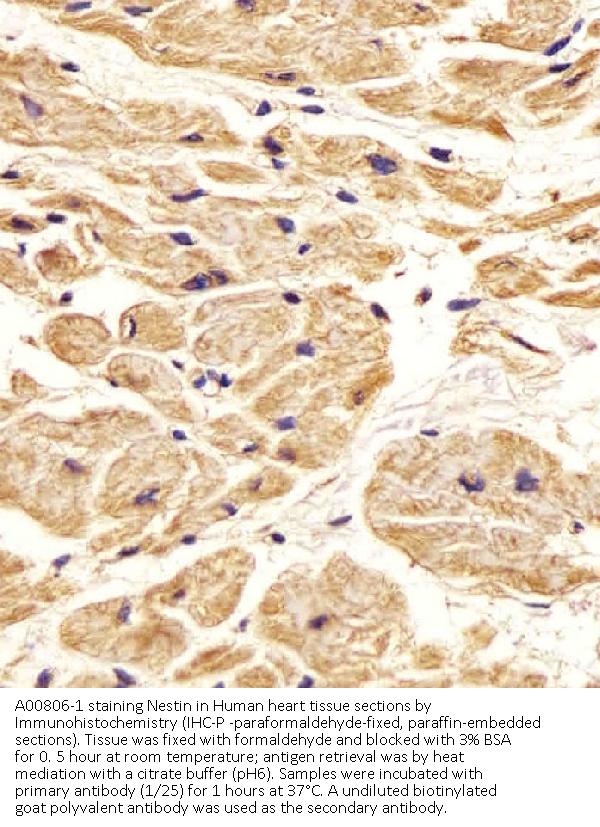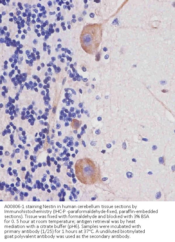 Boster Bio Anti-Nestin Antibody (S1409) (Catalog # A00806-1). Tested in WB, IHC-P, IF, Flow Cytometry application(s). This antibody reacts with Human.