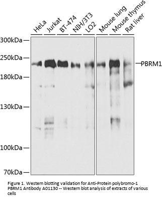 Boster Bio Anti-Protein polybromo-1 PBRM1 Antibody catalog # A01130. Tested in WB applications. This antibody reacts with Human, Mouse, Rat.