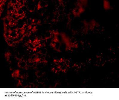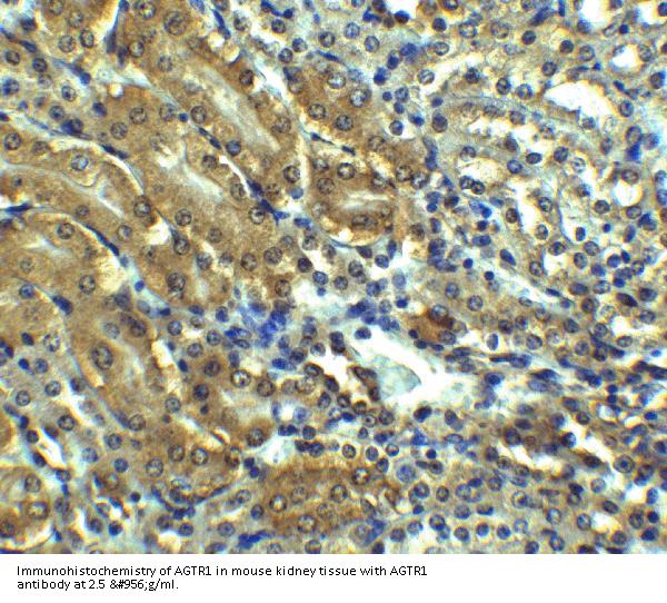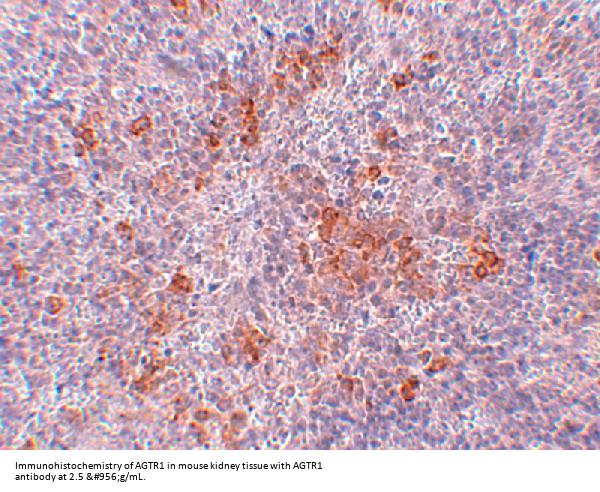 AGTR1 antibody was raised against a 16 amino acid synthetic peptide from near the center of human AGTR1. The immunogen is located within amino acids 210 - 260 of AGTR1.
