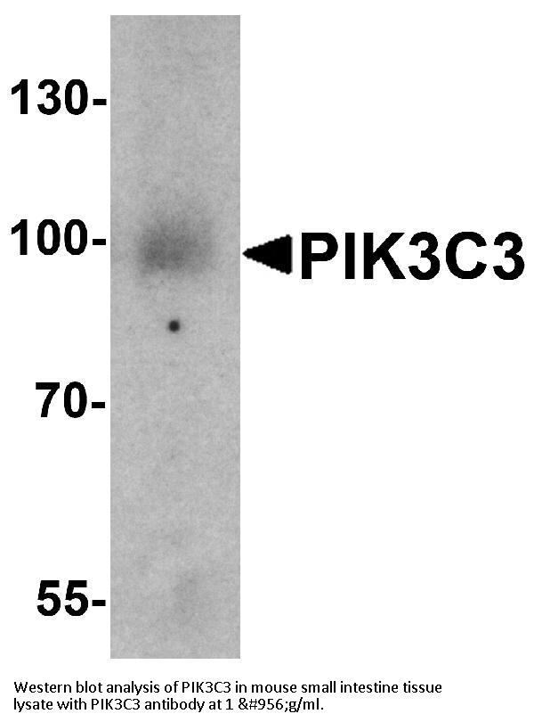 PIK3C3 antibody was raised against an 18 amino acid peptide near the amino terminus of human PIK3C3. The immunogen is located within amino acids 130 - 180 of PIK3C3.