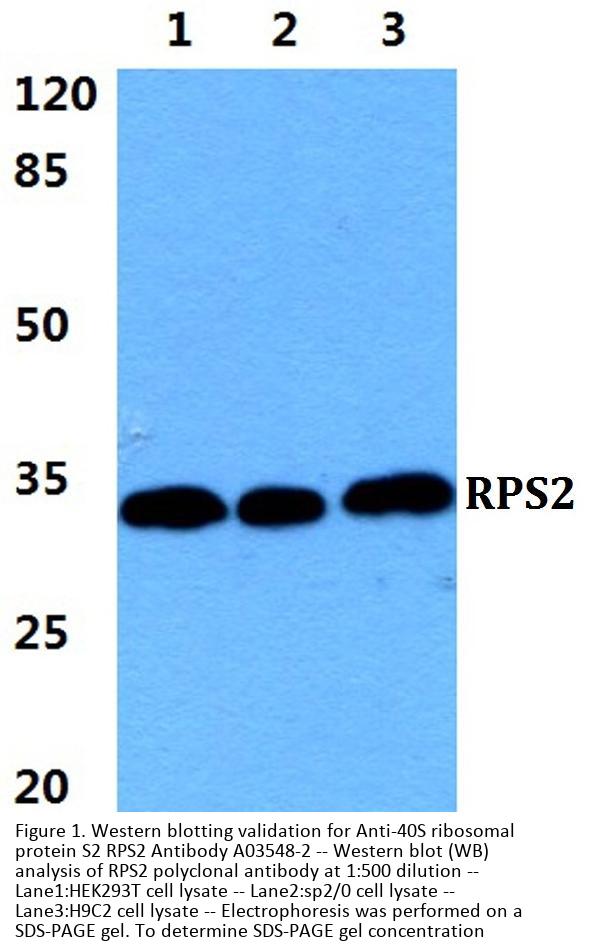 Boster Bio Anti-40S ribosomal protein S2 RPS2 Antibody catalog # A03548-2. Tested in WB, ICC, IP applications. This antibody reacts with Human, Mouse, Rat.