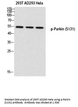 The antiserum was produced against synthesized peptide derived from human Parkin around the phosphorylation site of Ser131. AA range:101-150