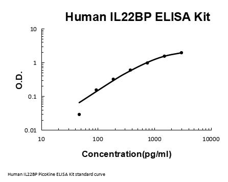 Human IL22BP PicoKine® ELISA Kit (96 Tests). Quantitate Human IL22BP in cell culture supernatants, serum and plasma (heparin, EDTA). Sensitivity: 25 pg/ml. The brand Picokine indicates this is a premium quality ELISA kit. Each Picokine kit delivers precise quantification, high sensitivity, and excellent reproducibility. Only our most reliable and effective kits qualify as Picokine, guaranteeing top-tier results for your assays.