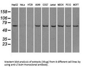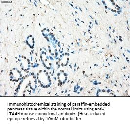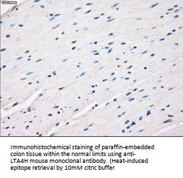 Boster Bio Anti-LTA4H (Leukotriene A4 hydrolase) mouse monoclonal antibody, clone OTI1E9 (formerly 1E9). Catalog# M02399-2. Tested in IHC, IP, WB. This antibody reacts with Human, Monkey, Mouse, Rat, Dog.