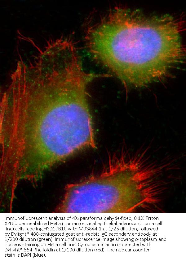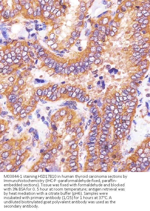 Boster Bio Anti-HSD17B10 Antibody (Center) (Catalog # M03844-1). Tested in WB, Flow Cytometry, IHC-P, IF application(s). This antibody reacts with Human, Mouse, Rat.