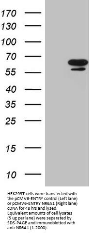 Boster Bio NR6A1 mouse monoclonal antibody, clone OTI6F3. Catalog# M05443. Tested in WB. This antibody reacts with Human, Mouse, Rat.
