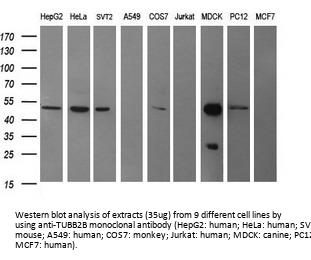 Boster Bio TUBB2B mouse monoclonal antibody, clone OTI6D11. Catalog# M05849. Tested in IF, IHC, WB. This antibody reacts with Human, Mouse, Rat.