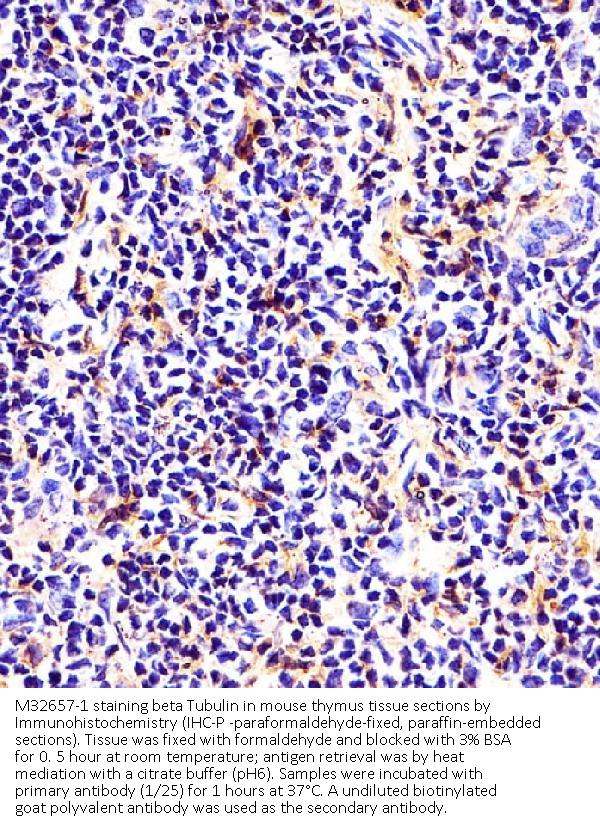 Boster Bio Anti-beta Tubulin (Catalog # M32657-1). Tested in WB, Flow Cytometry, IHC-P application(s). This antibody reacts with Mouse, Rat.