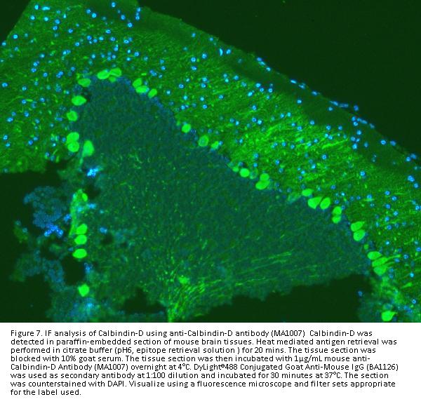 Boster Bio Anti-Calbindin-D Calb1 Antibody (Monoclonal, CB-955) catalog # MA1007. Tested in IF, IHC, WB applications. This antibody reacts with Bovine, Human, Mouse, Rat.