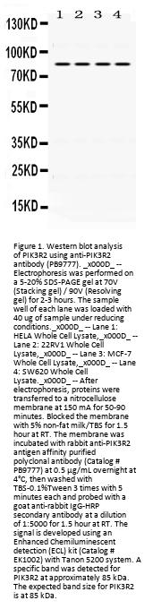 Boster Bio Anti-PI 3 Kinase p85 beta/PIK3R2 Antibody Picoband® catalog # PB9777. Tested in WB applications. This antibody reacts with Human. The brand Picoband indicates this is a premium antibody that guarantees superior quality, high affinity, and strong signals with minimal background in Western blot applications. Only our best-performing antibodies are designated as Picoband, ensuring unmatched performance.
