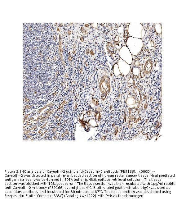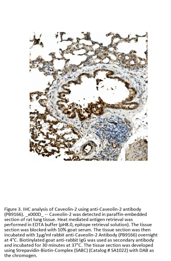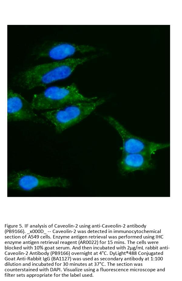 Boster Bio Anti-Caveolin-2/CAV2 Antibody Picoband® catalog # PB9166. Tested in Flow Cytometry, IF, IHC, ICC, WB applications. This antibody reacts with Human, Mouse, Rat. The brand Picoband indicates this is a premium antibody that guarantees superior quality, high affinity, and strong signals with minimal background in Western blot applications. Only our best-performing antibodies are designated as Picoband, ensuring unmatched performance.