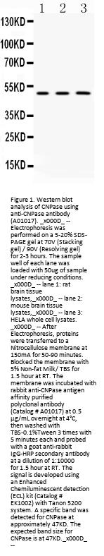 Boster Bio Anti-CNPase Antibody Picoband® catalog # A01017. Tested in WB applications. This antibody reacts with Human, Mouse, Rat. The brand Picoband indicates this is a premium antibody that guarantees superior quality, high affinity, and strong signals with minimal background in Western blot applications. Only our best-performing antibodies are designated as Picoband, ensuring unmatched performance.