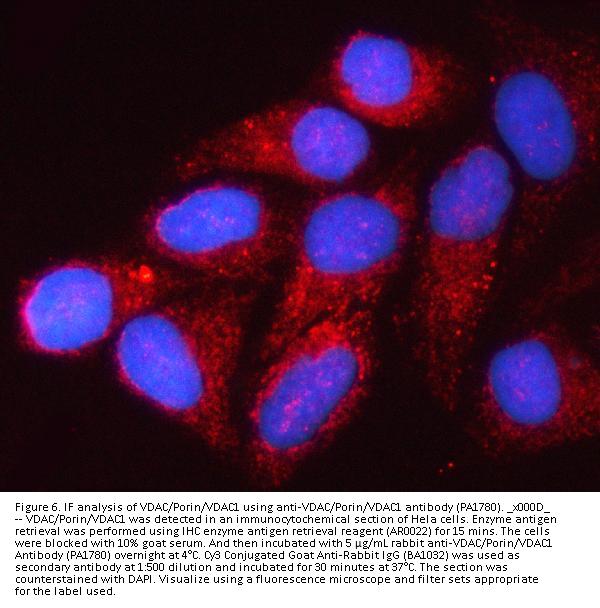 Boster Bio Anti-VDAC/Porin/VDAC1 Antibody catalog # PA1780. Tested in Flow Cytometry, IF, IHC, ICC, WB applications. This antibody reacts with Human, Mouse, Rat. The brand Picoband indicates this is a premium antibody that guarantees superior quality, high affinity, and strong signals with minimal background in Western blot applications. Only our best-performing antibodies are designated as Picoband, ensuring unmatched performance.