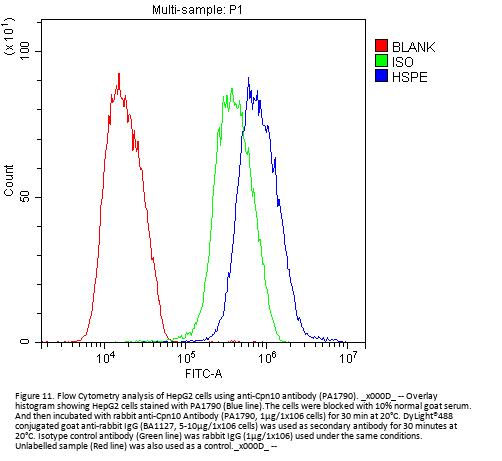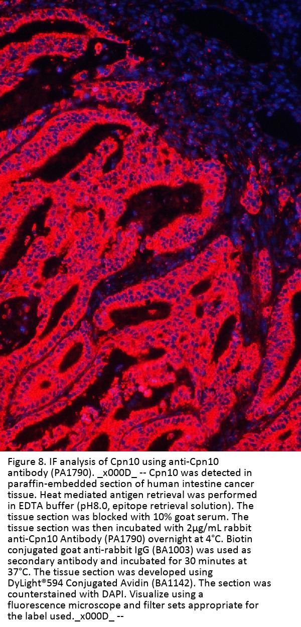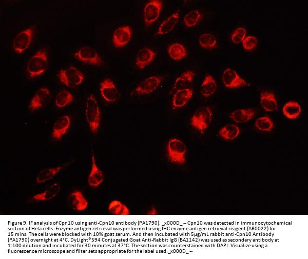 Boster Bio Anti-Cpn10/HSPE1 Antibody catalog # PA1790. Tested in Flow Cytometry, IF, IHC, ICC, WB applications. This antibody reacts with Human, Mouse, Rat. The brand Picoband indicates this is a premium antibody that guarantees superior quality, high affinity, and strong signals with minimal background in Western blot applications. Only our best-performing antibodies are designated as Picoband, ensuring unmatched performance.