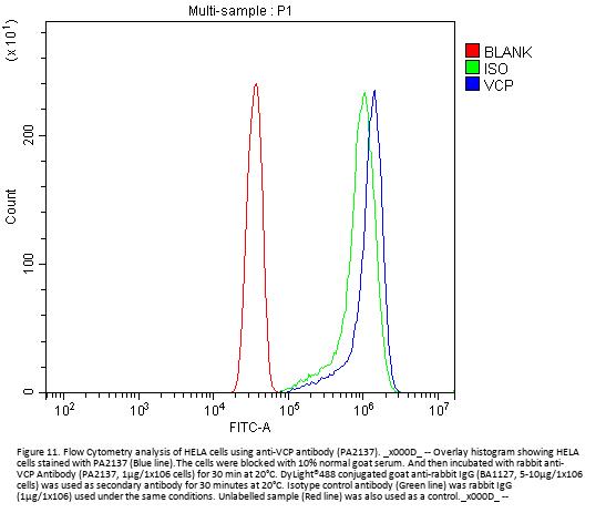 Boster Bio Anti-VCP Antibody catalog # PA2137. Tested in Flow Cytometry, IF, IHC, IHC-F, ICC, WB applications. This antibody reacts with Human, Monkey, Mouse, Rat. The brand Picoband indicates this is a premium antibody that guarantees superior quality, high affinity, and strong signals with minimal background in Western blot applications. Only our best-performing antibodies are designated as Picoband, ensuring unmatched performance.