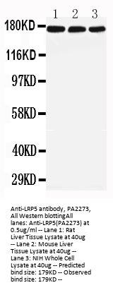 Boster Bio Anti-LRP5 Antibody catalog # PA2273. Tested in WB applications. This antibody reacts with Human, Mouse, Rat. The brand Picoband indicates this is a premium antibody that guarantees superior quality, high affinity, and strong signals with minimal background in Western blot applications. Only our best-performing antibodies are designated as Picoband, ensuring unmatched performance.